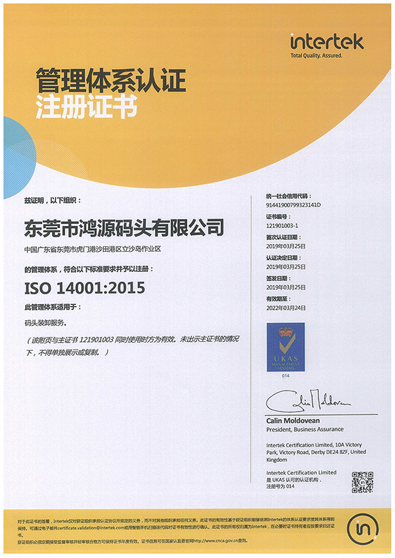 ISO-14001环境管理体系证书